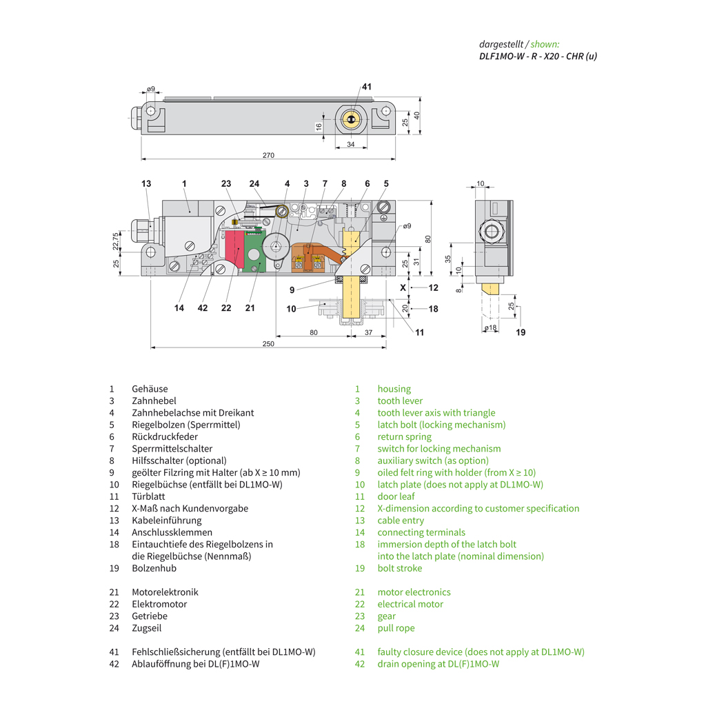 The motorized door interlock DL(F)1MO is also available in level of protection IP54. Due to the sealing against splashing water and dust this door interlock is ideally suitable for the use in harsh industrial environments. We offer the DL(F)1MO in level of protection IP54 for the horizontal and vertical installation position.