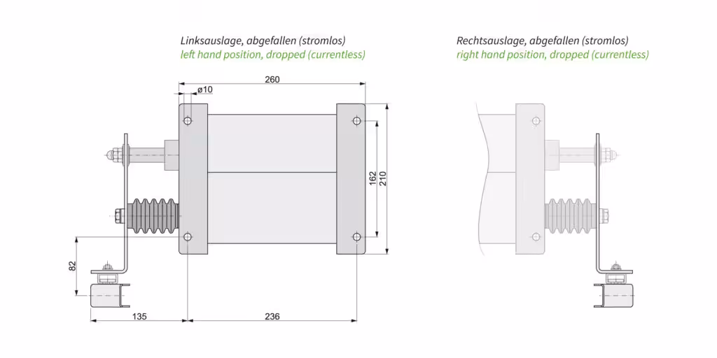 The electromagnetic retiring cam EMT19 is equipped with a considerable higher force and a longer travel in comparison to the version EMT17. The assembly is made on the car roof. The adjusting range of the actual cam is extraordinary high, because the sliding rail can be adjusted, too. Furthermore the cam can be rearranged from left to right position.