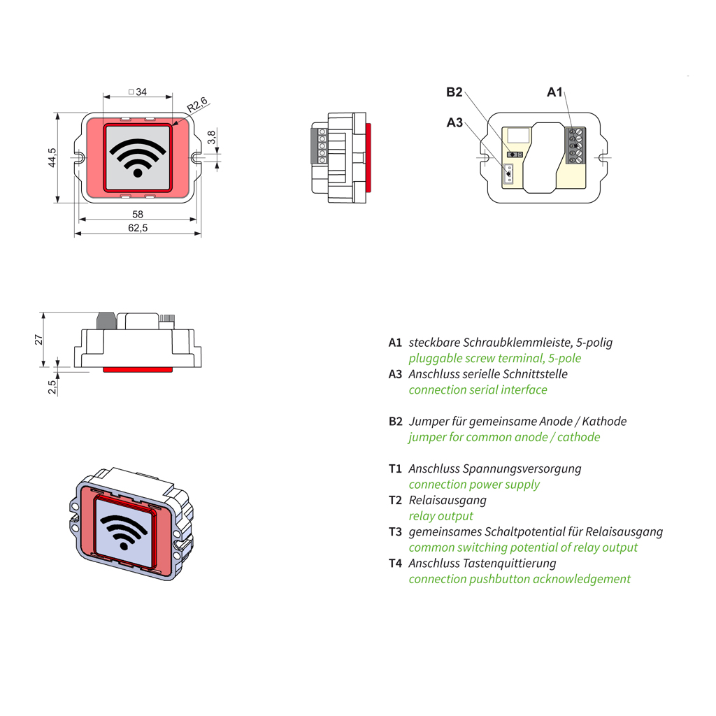 The UTRFID module enables convenient and secure control of lift functions. Stored transponders (TAGs) can be used to activate, lock or release call and operating elements – flexibly and reliably. Up to 250 individual transponders can be managed. Visual and acoustic feedback ensures clear user guidance.