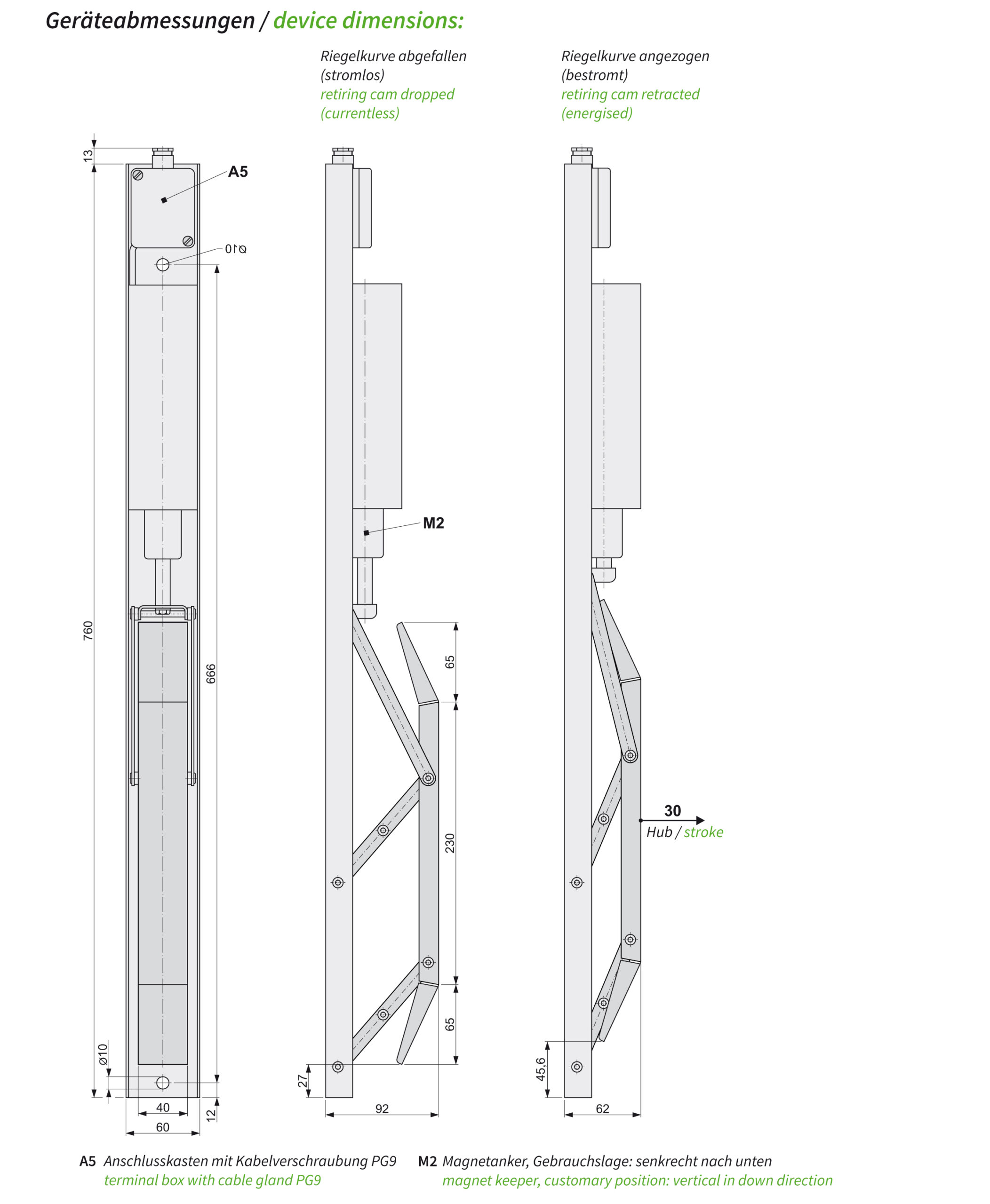 Bei der elektromagnetischen Riegelkurve EMT15K-W in Schutzart IP54 ist der Magnet oberhalb der eigentlichen Kurve angeordnet, wodurch sich eine geringere Einbautiefe ergibt. Bei beengten Platzverhältnissen ist diese Ausführung von Vorteil. Die Kraft ist etwas geringer im Vergleich zur EMT17-W.