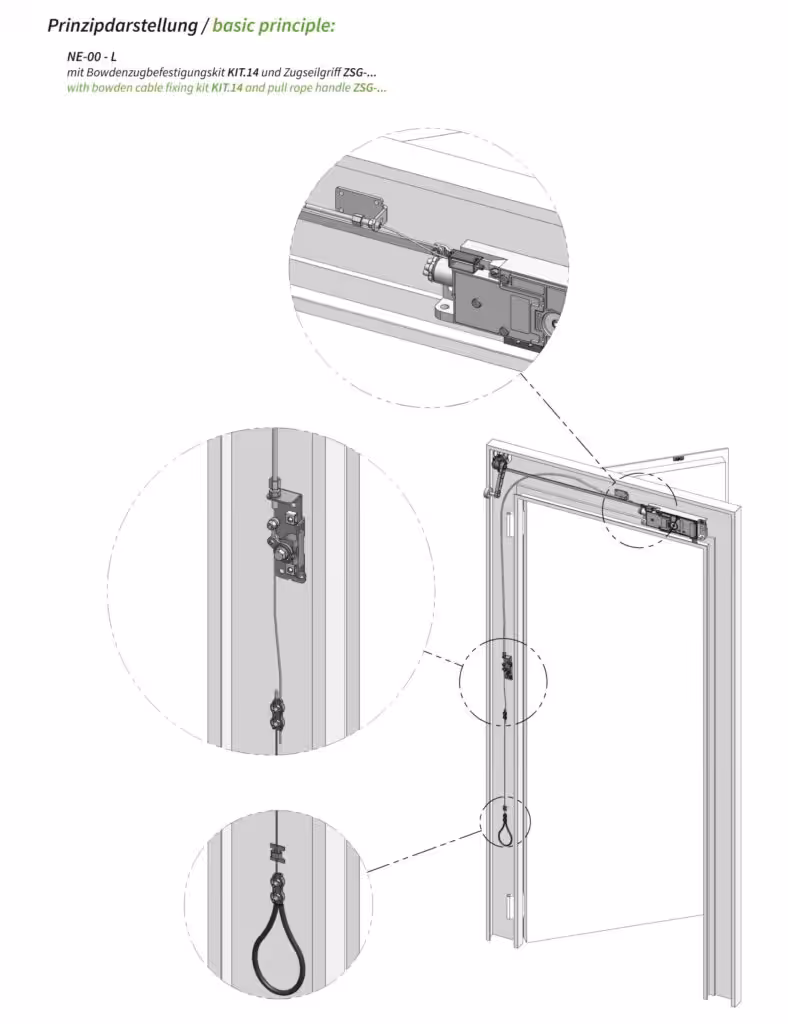 Die Dreikant- Notentriegelungseinheit Typ NE sind für die Realisierung einer Notentriegelung an einer gut zugänglichen Stelle vorgesehen. Sie betätigen die an der Verriegelung angebrachten Seil- bzw. Bowdenzüge. Sie eignen sich auch zur Nachrüstung bestehender Anlagen zur Erhöhung der Sicherheit auf Stand der Technik.