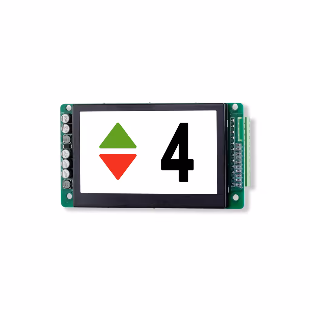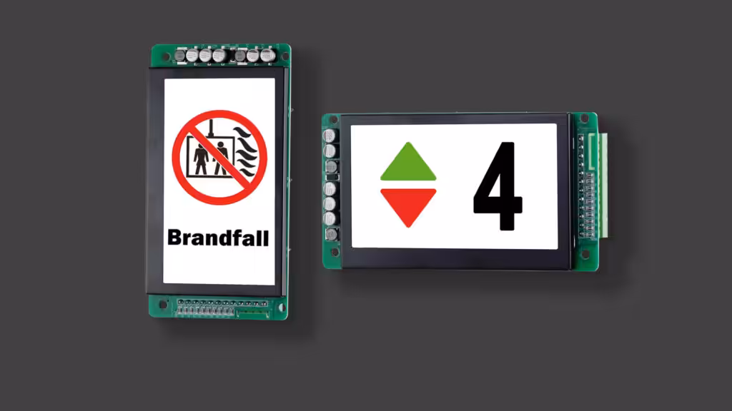 Die 4,3-Zoll-Anzeige eignet sich ideal für Kabinen- und Außentableaus mit Standardfunktionen. Sie ermöglicht die Darstellung von bis zu 64 Etagen sowie 2 Hinweistexte im Voll- oder Teilformat – in Verbindung mit dem Busmodul TFT-BM7-SET sogar bis zu 7 Hinweise. Farbige Hintergründe, eine statische Richtungsanzeige sowie eine zusätzliche Textzeile im Querformat erweitern die Darstellungsmöglichkeiten.
